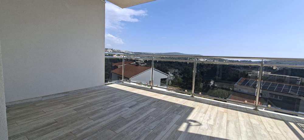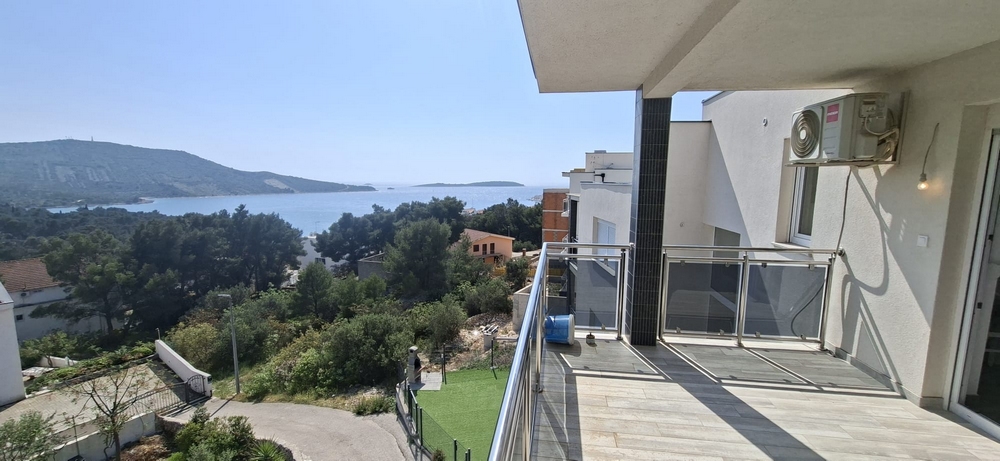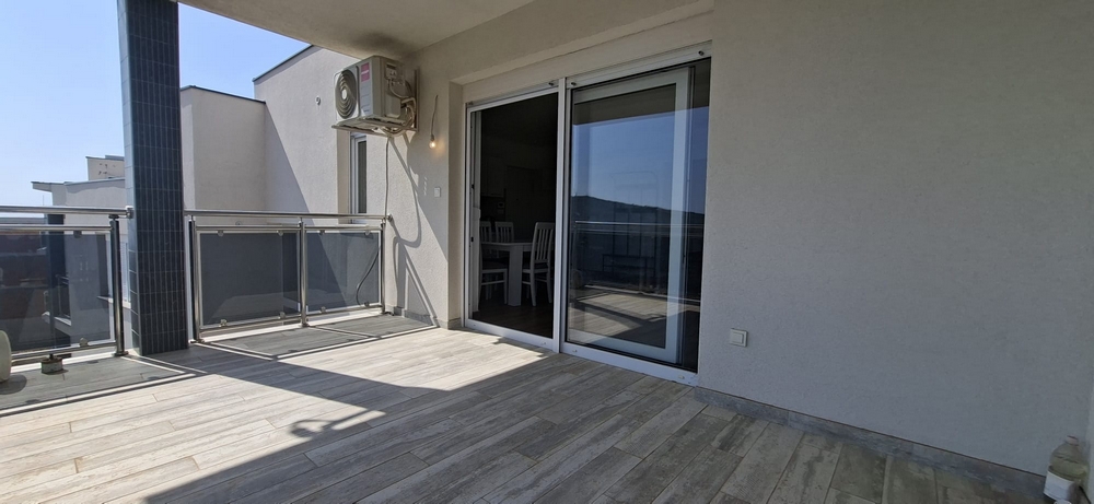 For sale is a penthouse apartment in Primošten, located on the second floor of a modern new building, offering a stunning panoramic sea view that cannot be obstructed.