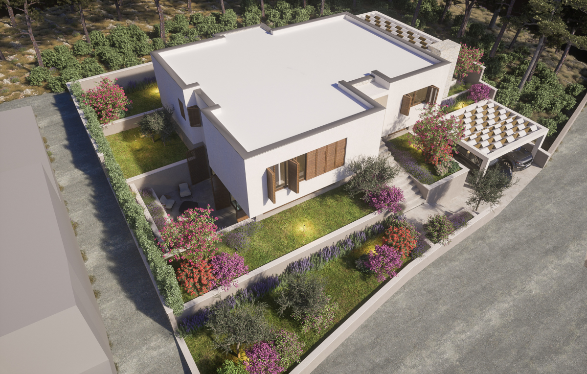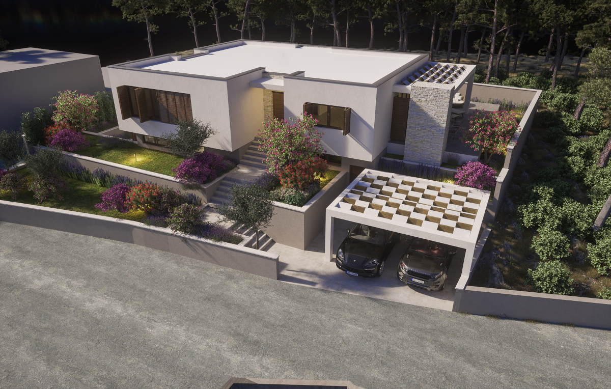 Top location Brodarica just a few meters from the sea new villa project. The total area of the building is 291m2 and extends over two residential floors.The ground floor consist of entrance area, a storage room, a living room, two bathrooms, a fitness area and an indoor swimming pool of 23m2.First floor consist of entrance area, a living room with kitchen and dining area, four bedrooms, four bathrooms and a large terrace of 48m2 .The completion of the construction is by the end of 2020, and at this stage you can participate in the interior decoration of the villa in order to adapt it to your needs. . Please contact the agency for more information.