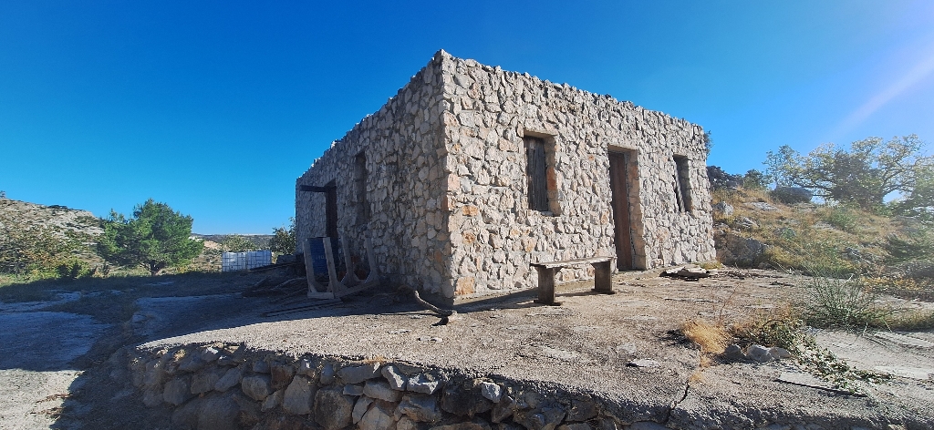 Na mirnoj lokaciji u okolici Primoštena prodaje se legalizirana kuća u roh-bau fazi površine 67 m², smještena na prostranom zemljištu od 3.776 m².