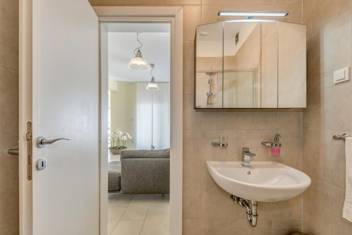 Stambena površina od 100 m² raspoređena je iznimno funkcionalno, s naglaskom na udobnost i prirodno svjetlo. Interijer je moderan i topao, s visokokvalitetnim materijalima i pažljivo odabranim detaljima.