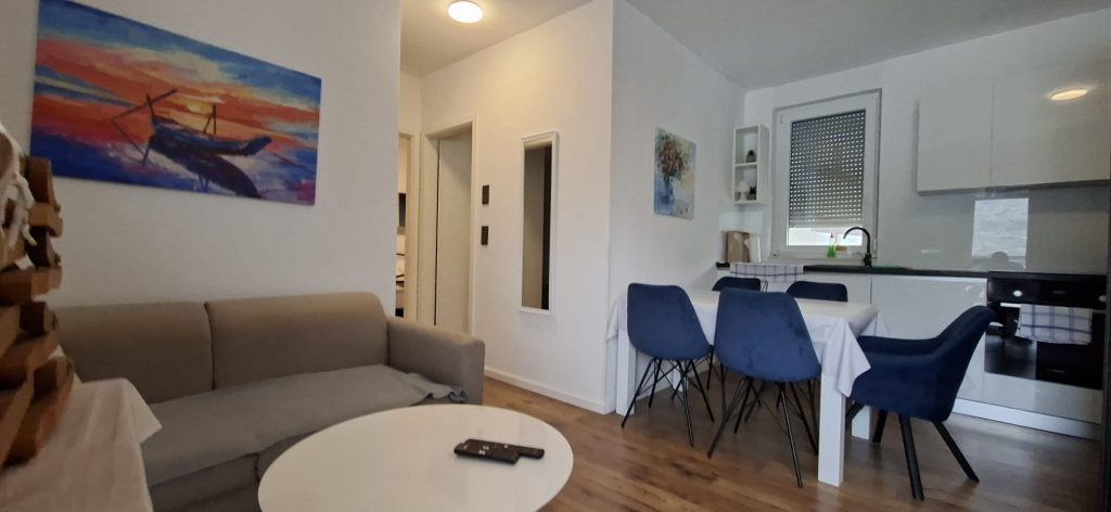 Stan se prodaje potpuno namješten i spreman je za useljenje ili nastavak turističkog najma. U cijenu je uključeno i vlastito vanjsko parkirno mjesto.