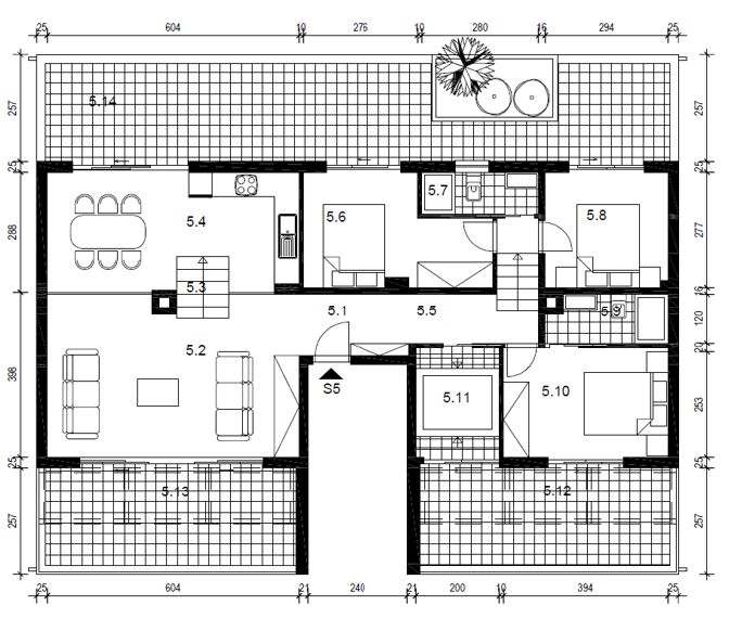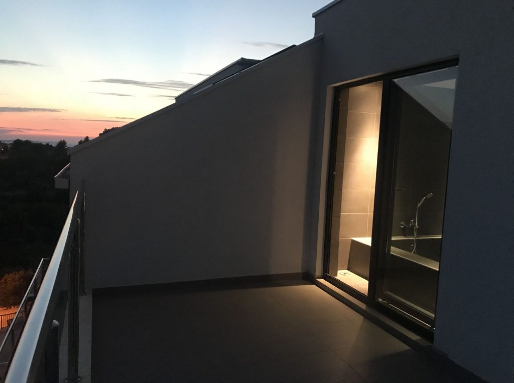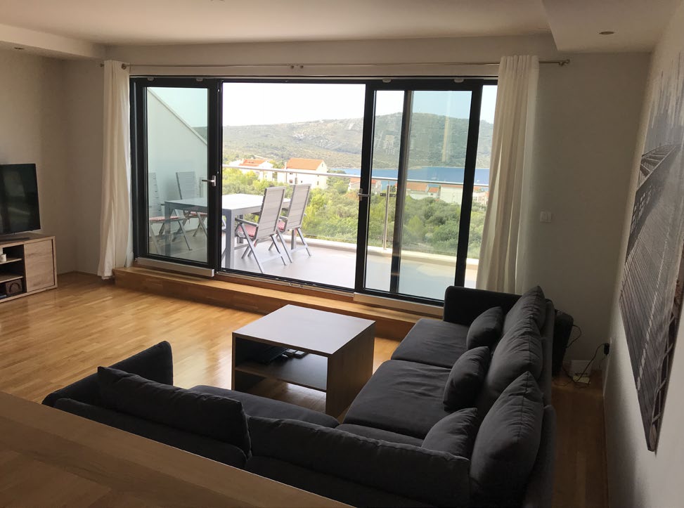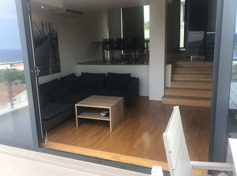 Svaka prostorija ovog apartmana pažljivo je dizajnirana s ciljem pružanja maksimalne udobnosti. Prostrani dnevni boravak s kuhinjom i blagovaonicom u otvorenom planu izlazi na terasu s nevjerojatnim pogledom na Jadransko more, a tri luksuzne spavaće sobe garantiraju privatnost i udobnost. Jedna spavaća soba ima vlastitu kupaonicu i terasu s pogledom na more, a dodatne dvije kupaonice i velika terasa sa stražnje strane apartmana čine ovaj prostor savršenim za obitelj i goste.