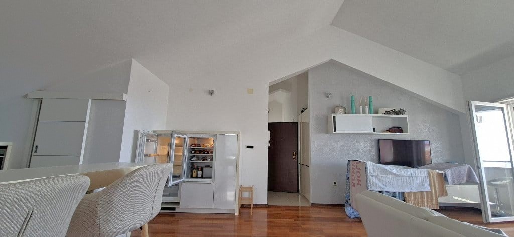 Stan se nalazi u potkrovlju, što osigurava dodatni mir, privatnost i poseban osjećaj otvorenosti prostora.