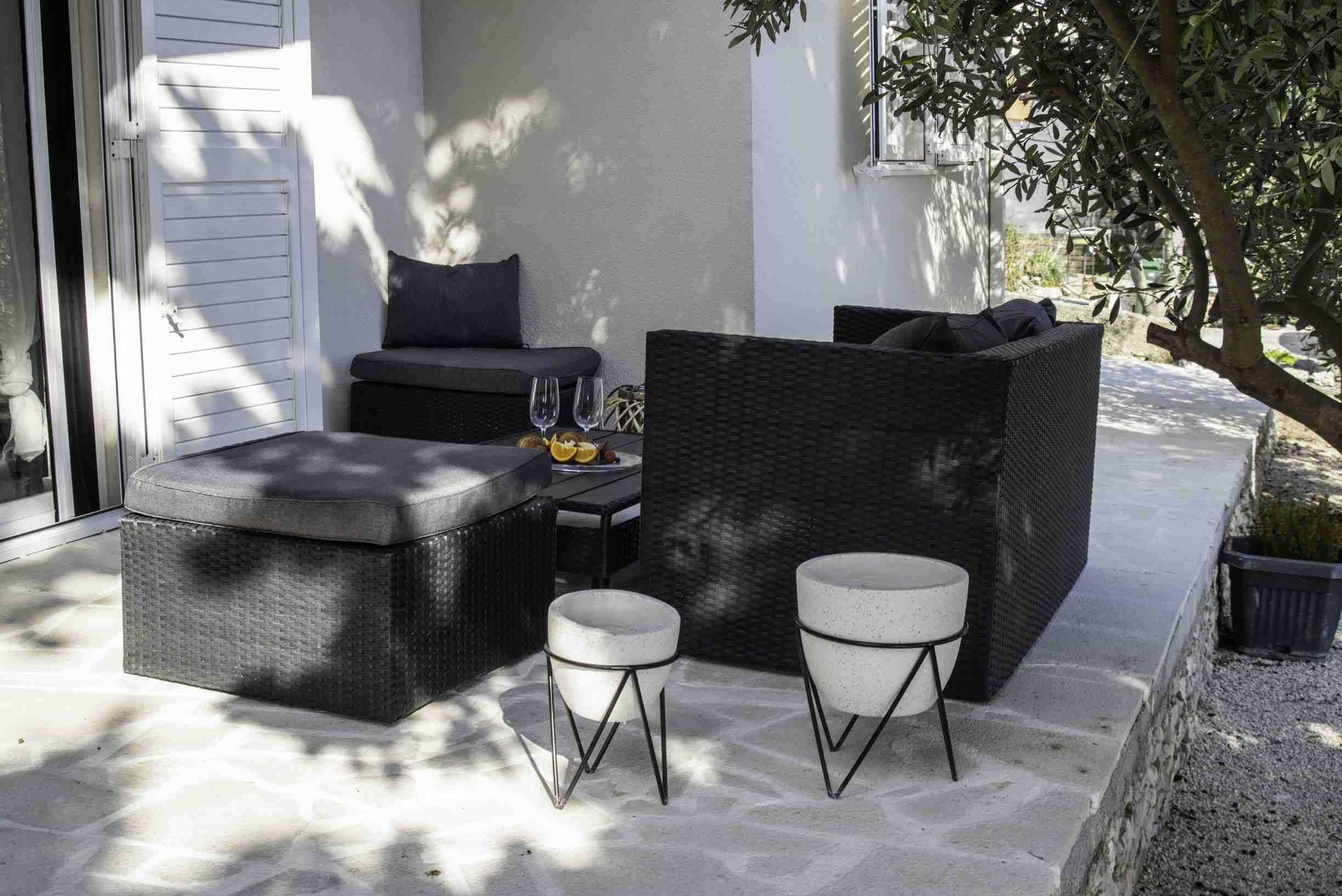 Smješten u prizemlju, apartman ima pogled na vrt, što osigurava mir, privatnost i jednostavan pristup bez stepenica. Upravo zbog toga posebno je praktičan za obitelji s djecom, starije osobe ili goste koji preferiraju lakši pristup.